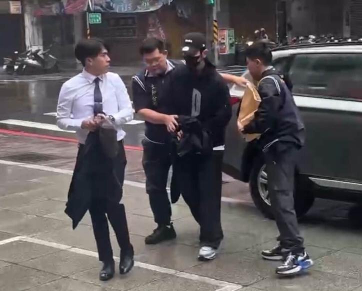 修杰楷被带走时穿着一身黑,帽子、口罩、墨镜,双手还被一件衣服裹了个圈,估计是在藏“银镯子”。