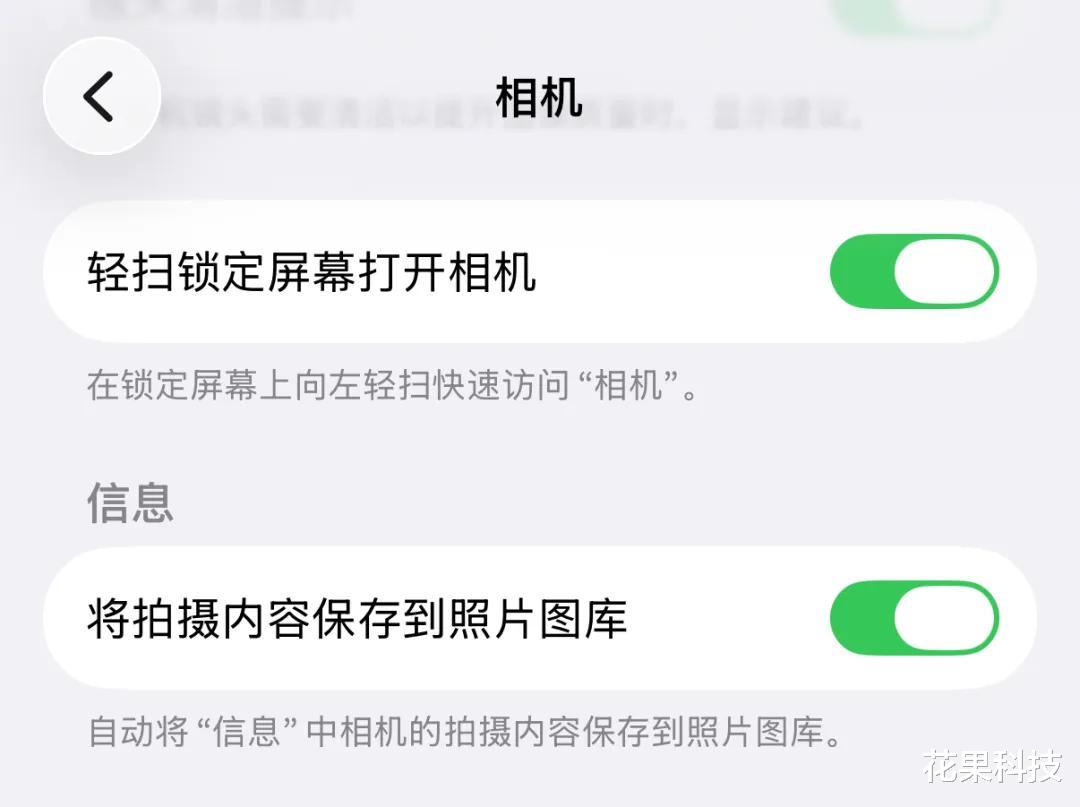 在 iPhone 设置--相机,新增「轻扫锁定屏幕打开相机」开关。