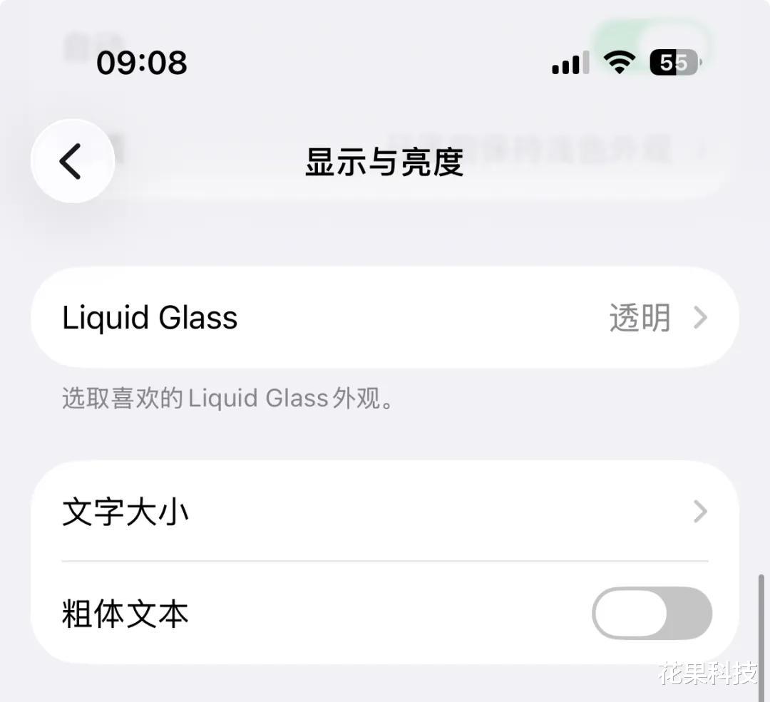 液态玻璃设置进入 iPhone 设置--显示与亮度,新增了一个「Liquid Glass」,也就是液态玻璃选项。