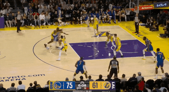 NBA常规赛,湖人对阵勇士的比赛正在进行中。