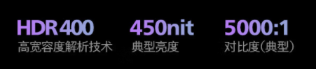 该显示器具备5000:1超高静态对比度,远超普通IPS屏幕,能够精准呈现明暗细节;搭配HDR400技术及450尼特典型亮度,在暗光场景中依旧层次分明,尤其在3A游戏中可实现极致黑场表现,带来更具沉浸感的画面效果。