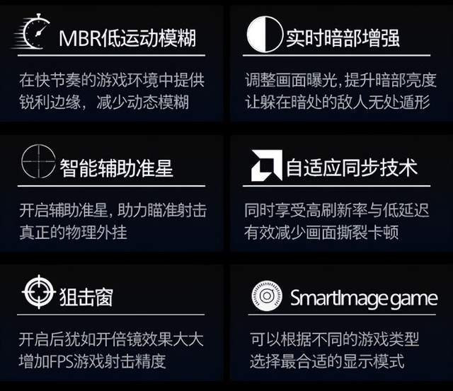 游戏体验上,不仅具备1ms GTG疾速响应,还集成智能准星、狙击镜放大、暗部增强等游戏辅助功能,并搭载零感同步技术,大幅降低输入延迟,所有场景都能轻松应对。
