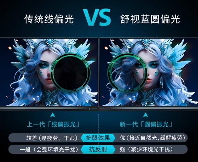 二、全球首款类自然光护眼屏幕——27M2N3500UK飞利浦EVNIA 27M2N3500UK搭载全球首款舒视蓝4.0圆偏光技术,是一款革命性的护眼电竞显示器。其通过模拟太阳光的螺旋扩散原理,形成类自然光波,使光线均匀分布到双眼各区域,显著减轻长时间使用导致的干眼、眼红症状。结合TUV硬件级低蓝光认证,能在不损失色彩准确性的前提下过滤有害短波蓝光,真正做到“护眼不偏黄”,适合长时间办公、游戏及影音娱乐用户。