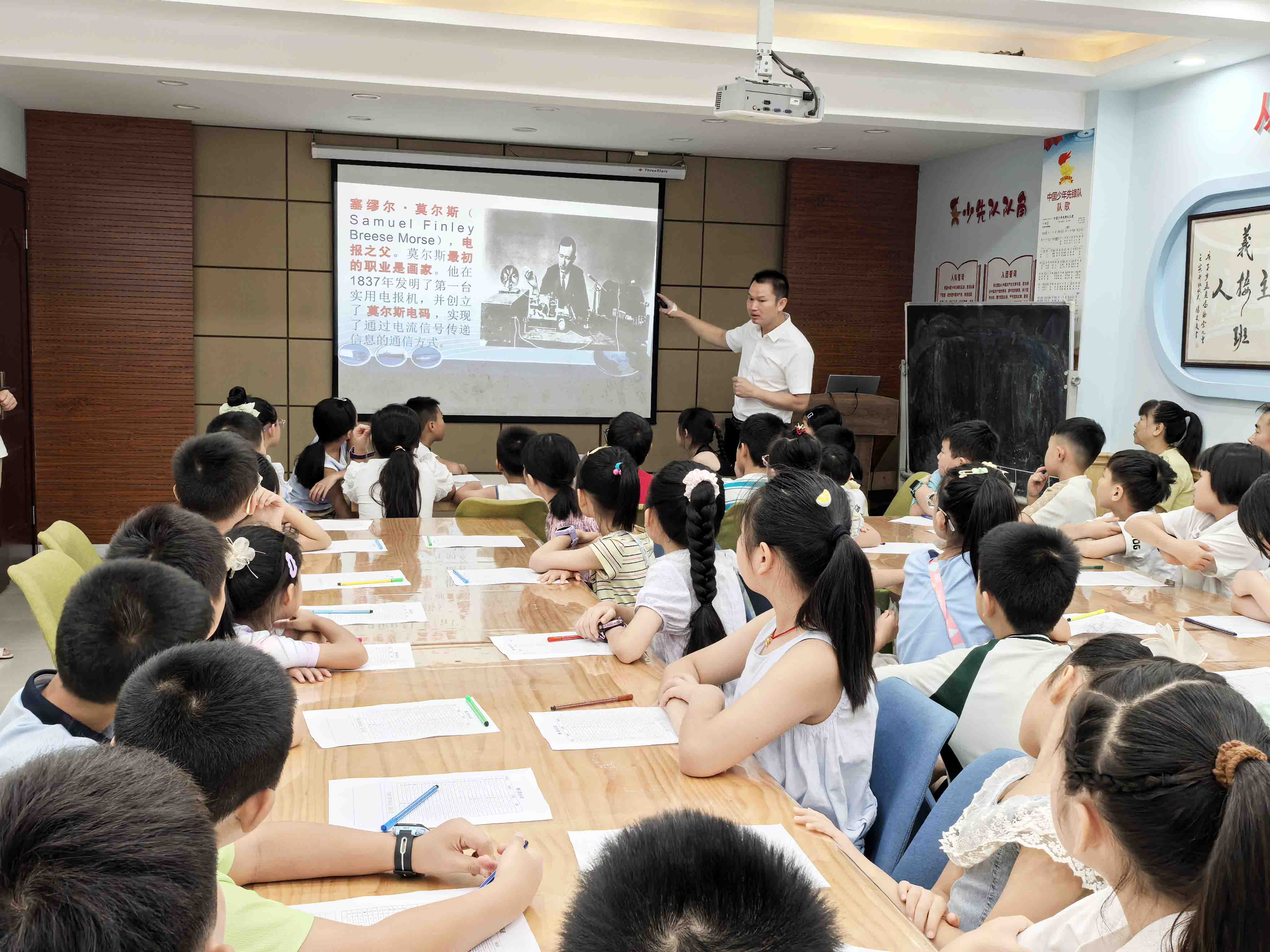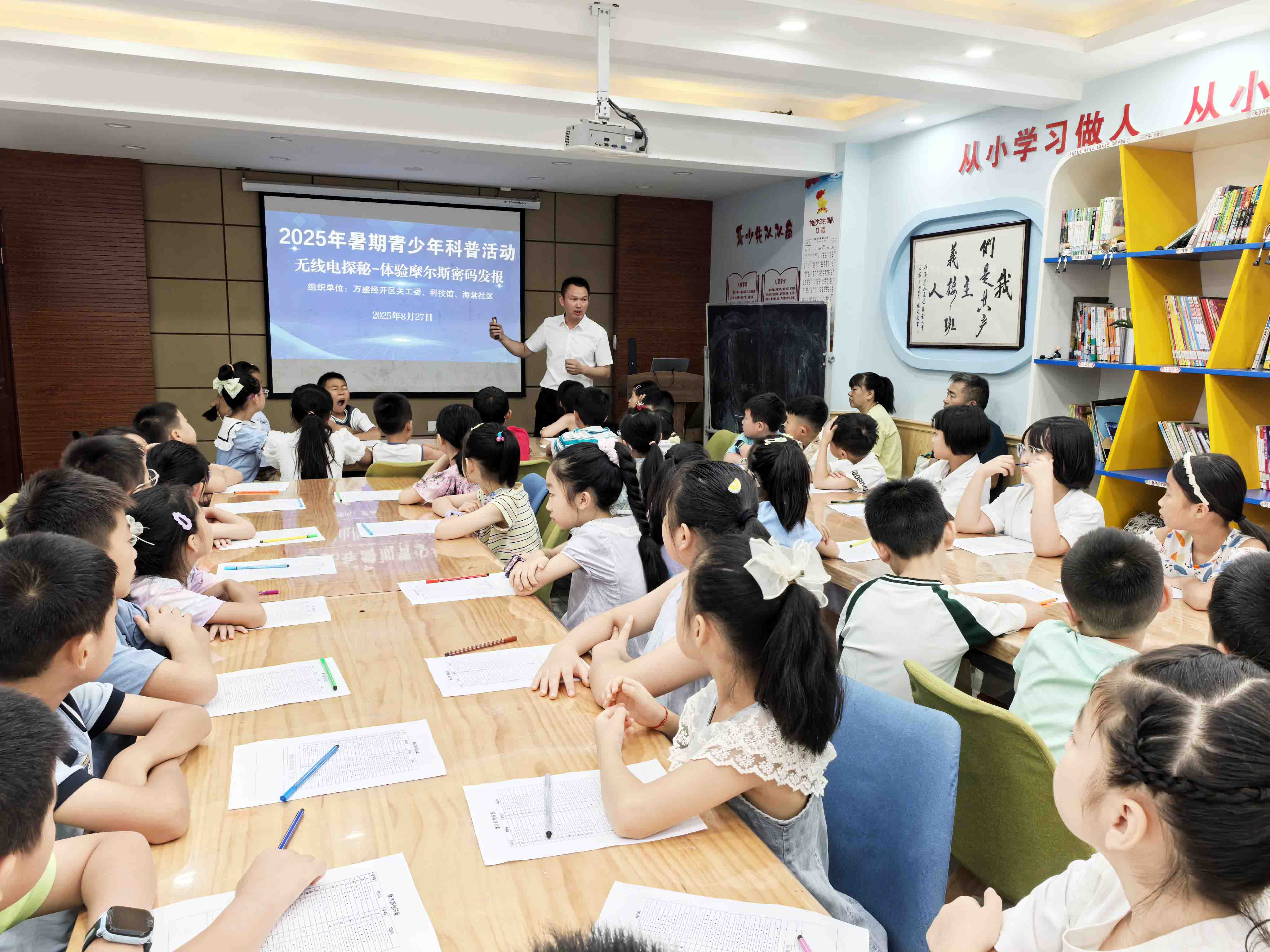 为帮助青少年提升对无线电技术与无线电安全的认知素养,8月27日,万盛经开区关工委科技教育辅导队、区科技馆、万东镇海棠社区关工委联合开展了2025年暑期青少年“无线电探秘 -体验摩尔斯密码发报”科普活动,活动旨在为青少年们揭开通讯科学的神秘面纱,引领他们走进无线电的奇妙世界。
