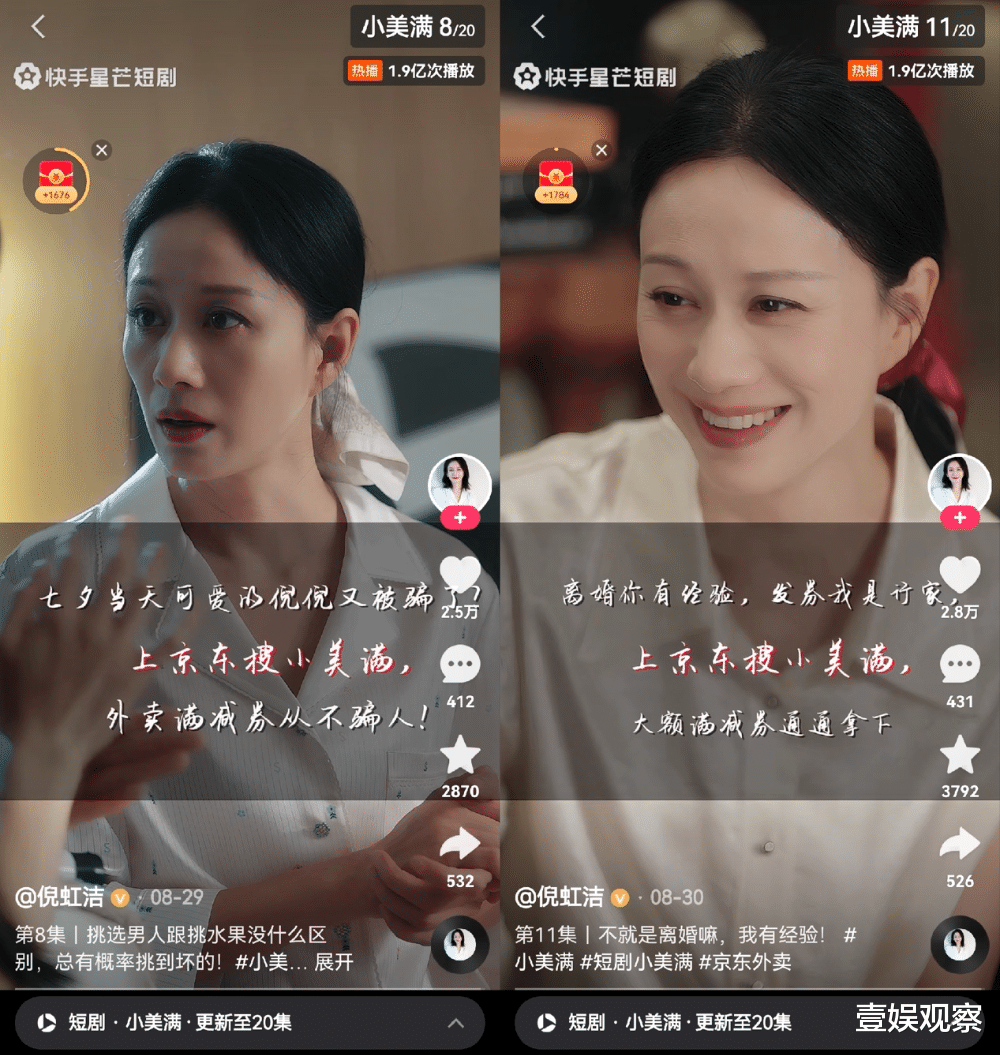 而从内容营销到基于内容的“品效合一”,快手星芒短剧《小美满》与京东外卖,完成了可触达用户辐射面的拓展与目标用户的转化,以及短期ROI回报与长期品牌价值和用户追随的共存。
