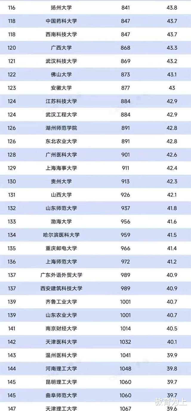 此外,居榜单前列的高校还有深圳大学、郑州大学、江苏大学、上海科技大学、浙江师范大学、青岛大学、南京信息工程大学、广州大学等,在这份全球最佳院校榜单中居前列,是考生报考性价比较高的一批大学。
