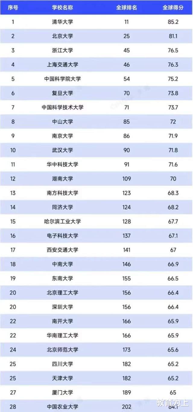 下面,我们截取中国高校全球最佳院校前200强,看一看你所在的大学有没有上榜?