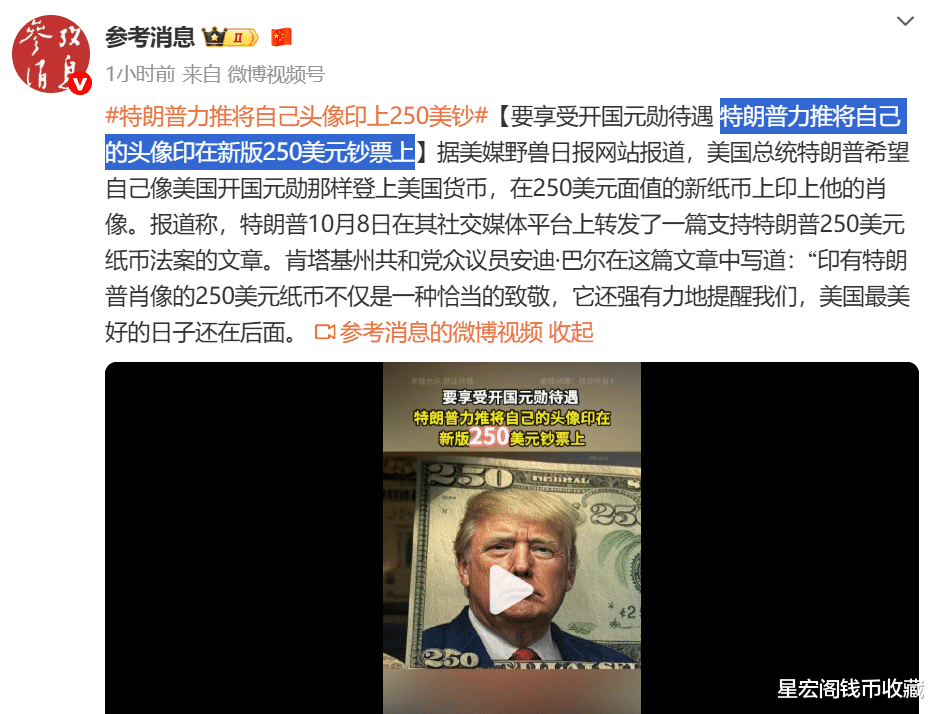 如果后期美国真的发行印有特朗普的纸币或者硬币,我也肯定会进行收藏,不知道到时候价格会怎么样,这样的纸币和硬币在美国也是第1次发行,个人还是比较期待他的发行。近几年国内市场外币收藏的圈子已经是很小很小,收藏以后想要脱手可能会比较难,价格不高的情况下,面值始终还是存在。