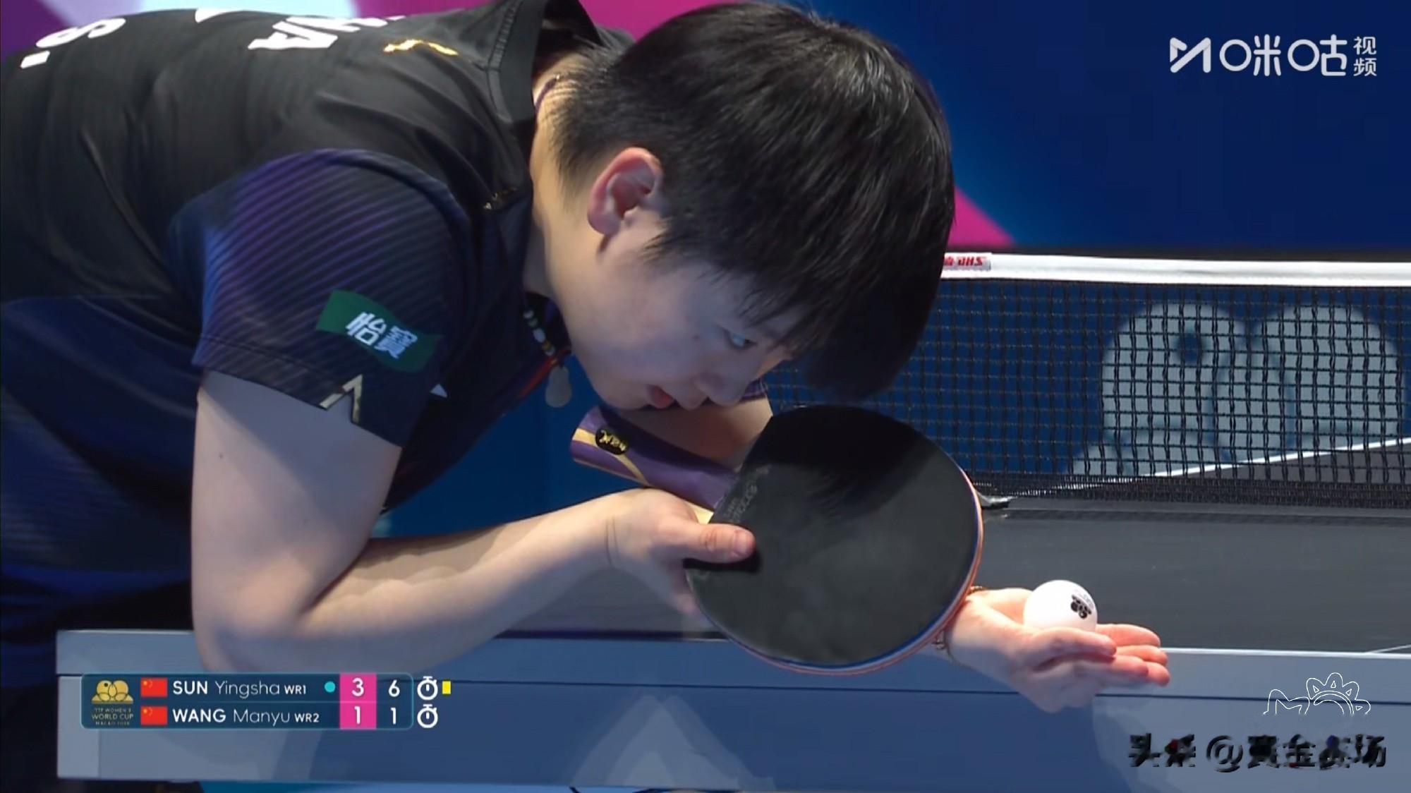 王曼昱的反手发球,本来是她的得分武器,之前跟孙颖莎打,这个发球让莎莎吃过不少亏。