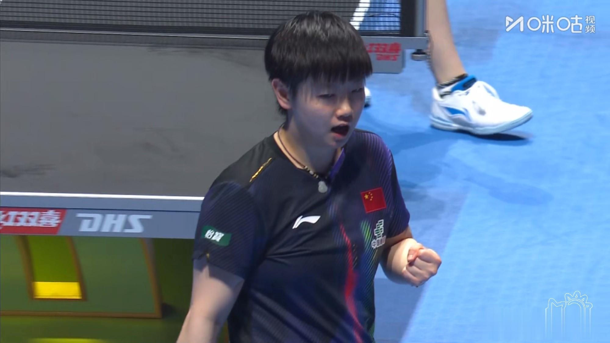 到第四局,王曼昱开局1比4落后,看着要崩了,但她硬是打出一波7比0,11比8扳回一局。