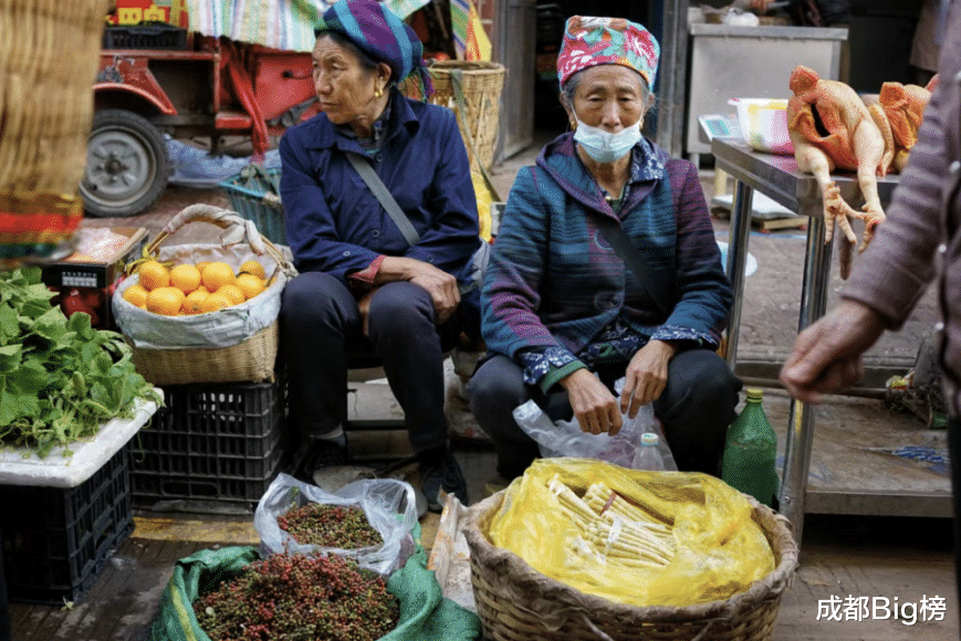 祥和菜市场的饱和度特别高,五颜六色的蔬菜瓜果一应俱全,净是高档货,但不必打点,用背篓一装,垛在地上就开卖。