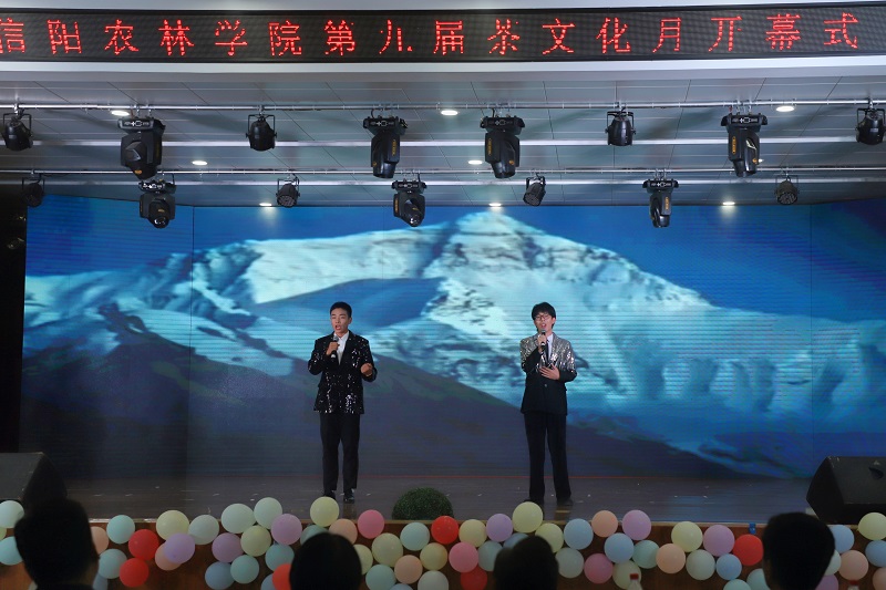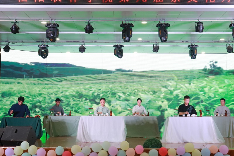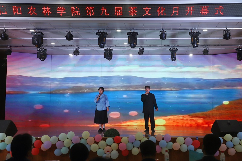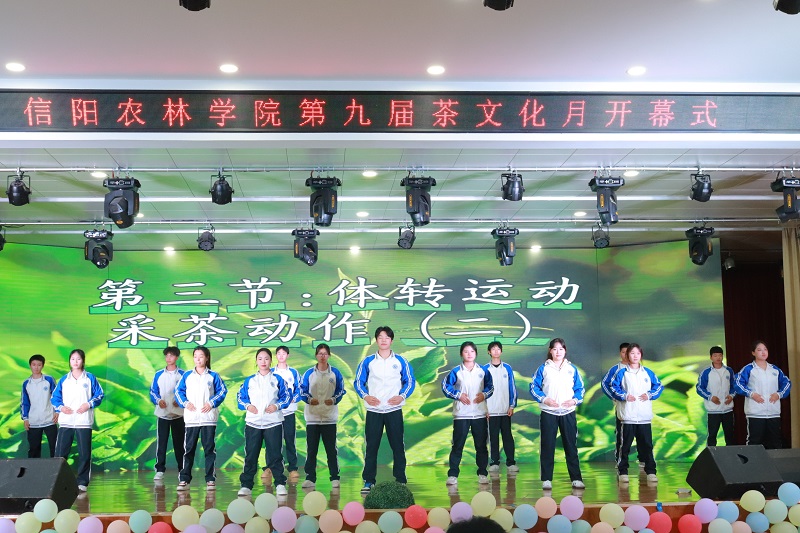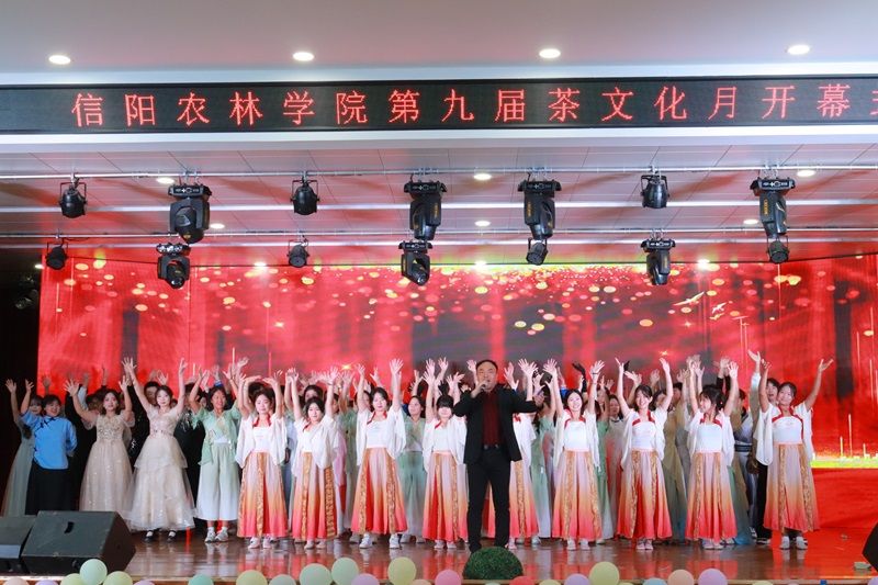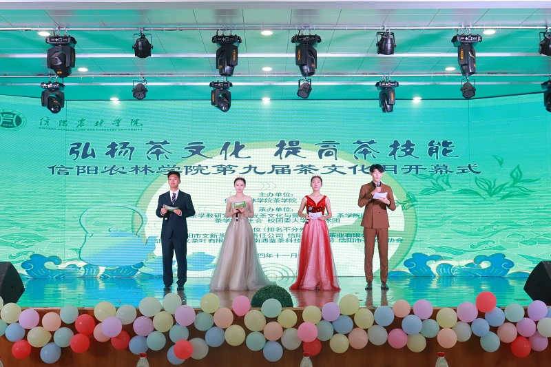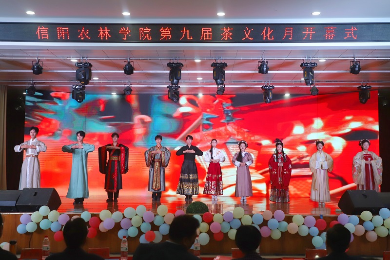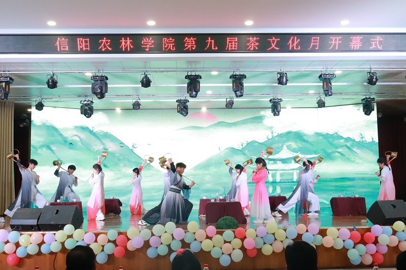 11月12日下午,由信阳农林学院茶学院和校团委主办的“弘扬茶文化、提高茶技能”——信阳农林学院第九届茶文化月开幕式及文艺演出在大学生活动中心举行。校党委书记黄松,党委副书记、工会主席王万玲,党委副书记何涛,党委委员、副校长李益民、易军鹏、刘开华,相关职能部门负责同志,信阳市茶产业发展中心、信阳市文旅局、浉河区茶产业发展中心、信阳市茶叶协会、信阳市茶文化协会主要领导,文新、嘉木饮、广义、遇鉴等茶企主要负责人,各学院师生代表近600人参加了开幕式。