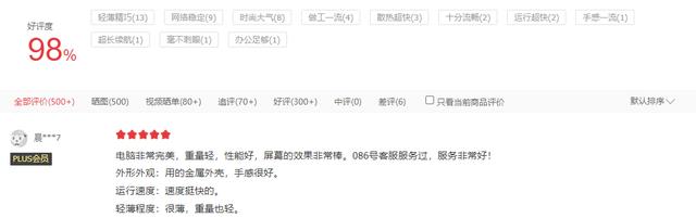 这款华硕灵耀14 2023在JD平台上的好评度达到了98%,可见大部分用户对于这款笔记本还是相当认可的。大部分用户对它的外观质感比较满意,灵耀14 2023采用的是金属机身,整机的设计较为优雅简约,重量控制到了1.3kg,厚度也只有15.9mm,质感出众的同时也十分轻薄。其搭载13代酷睿处理器性能相当强悍,多任务、高负载场景都能轻松胜任。