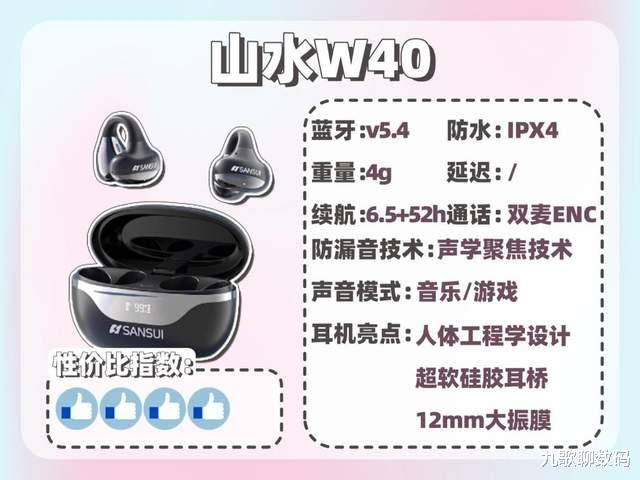 这款耳机最大的缺点就是漏音有点明显,声音开大点,旁边人都能听得一清二楚,对音质影响还不小。不过日常听歌倒也能凑活用,就是整体音质没什么亮点。但它的优点也很突出,续航真的超久,充满电差不多能用两天,实用性拉满。而且防水做得巨好,之前不小心给它扔进洗衣机滚了一圈,我还以为要报废了,结果拿出来一看,完全不影响用,太惊喜了。戴着也特舒服,整体轻巧得很,上次我戴着它睡着了,第二天醒过来耳朵一点不适感都没有。总的来说,还是挺实用的一款。