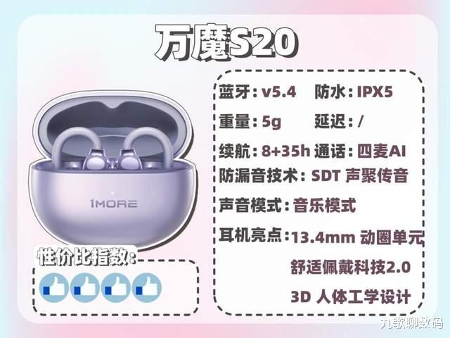 推荐理由:这款耳机音质表现出色,佩戴起来也很稳固,整体表现不错