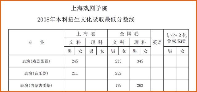 三、2008年分数线最低上戏影视表演专业内蒙古委培生的分数线,不同年份里变化也挺大的。因为那尔那茜是文科生,所以我们重点关注文科分数线。