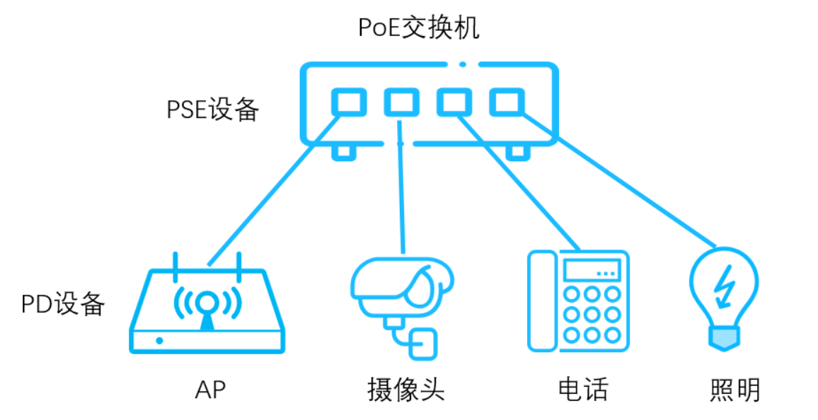 常见的 PoE 设备类型根据功能不同,PoE 设备可分为供电设备(PSE)和受电设备(PD)两大类: