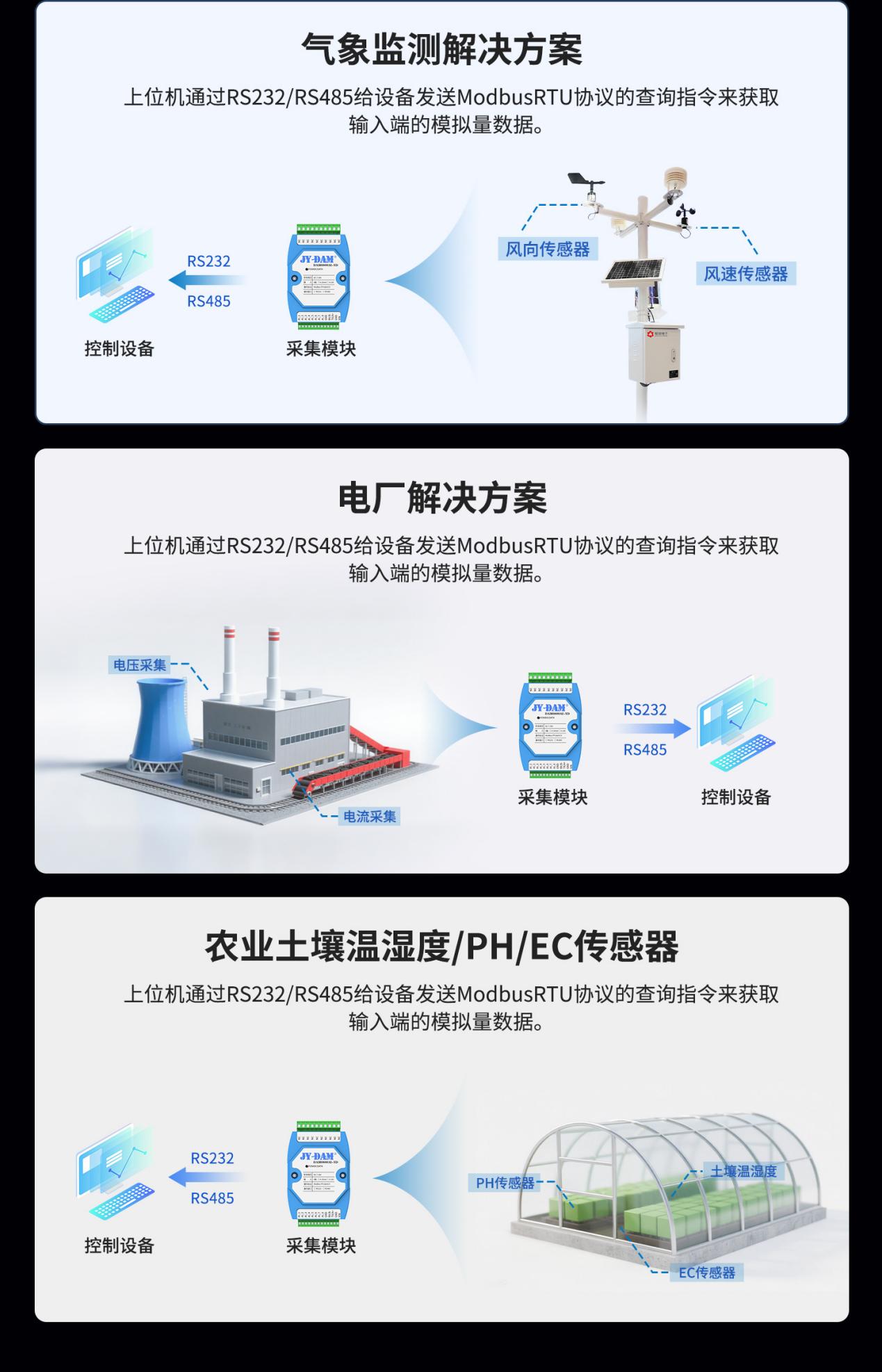 - 常见别名:模拟量采集器、AD转换模块、4-20mA转RS485、模拟量转数字量模块