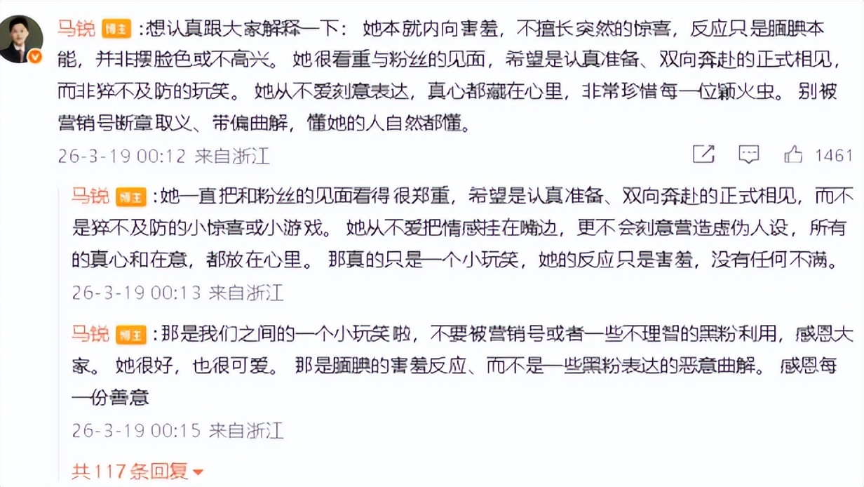 原来颖宝本就性格内向,特别是在减少综艺曝光后,面对突如其来的粉丝互动,只是本能的紧张窘迫,和嫌弃粉丝毫无关系。