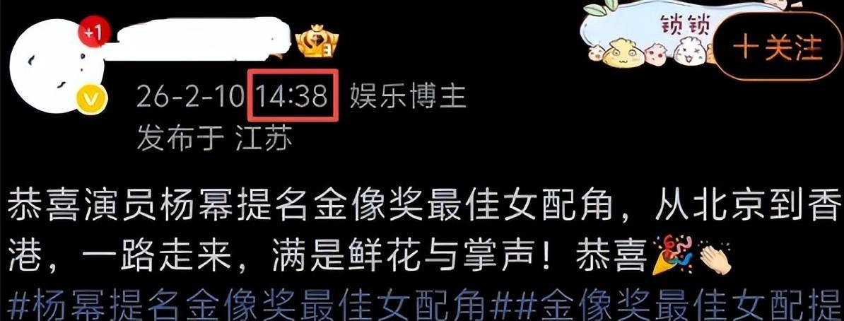遭遇无妄之灾今年2月份,金像奖提名公布,颖宝和杨幂都凭借《酱园弄》里的角色去申报最佳女配角,可离谱的事来了。