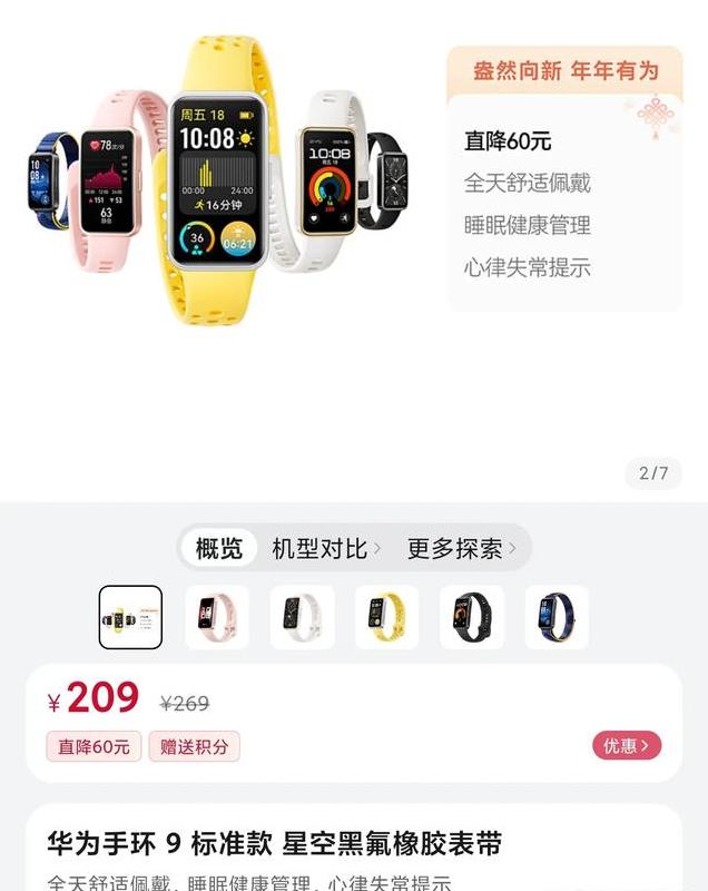 2、智能手环 9 标准版有60元的优惠,原价269元,如今只需要209元,如果经常运动,这个手环的性价比的确很高。
