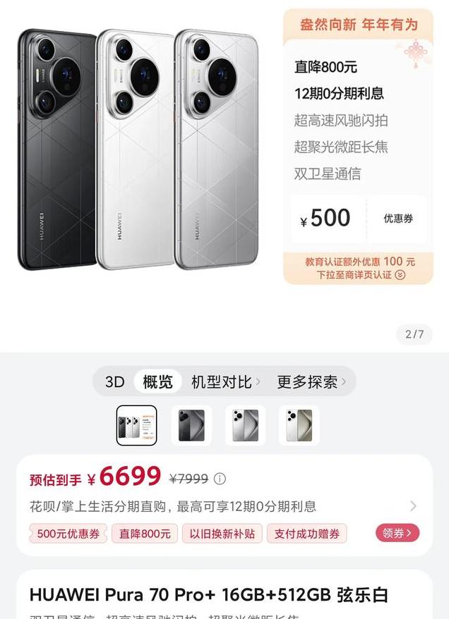 pura70 pro+的优惠力度没有pura70 ultra的大,16+512GB版本原价7999元,如今只需要6699元,直降了1300元。