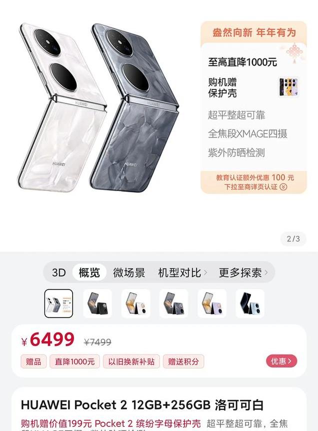 华为Pocket 2这次的优惠力度也非常大,至高直降1000元,12+256GB原价7499元,如今只需要6499元。