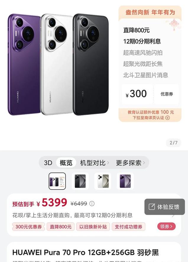 pura70 pro的优惠力度也不错,都是直降1100元,12+256GB版本的原价是6499元,如今只需要5399元。