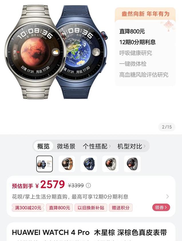 1、华为WATCH 4 Pro这次的优惠力度不错,直降了800元,原价3399元,如今只需要2579元,其他机型降价幅度比较低。