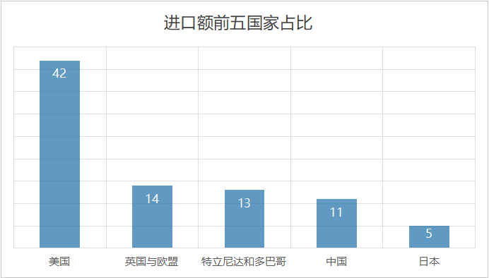 近几年,多米尼克出口额在0.3亿美元以下,进口额一般在2.5-3亿美元。货物贸易逆差大,不过服务业旅游业等收入能够弥补。能源燃料是进口大项。