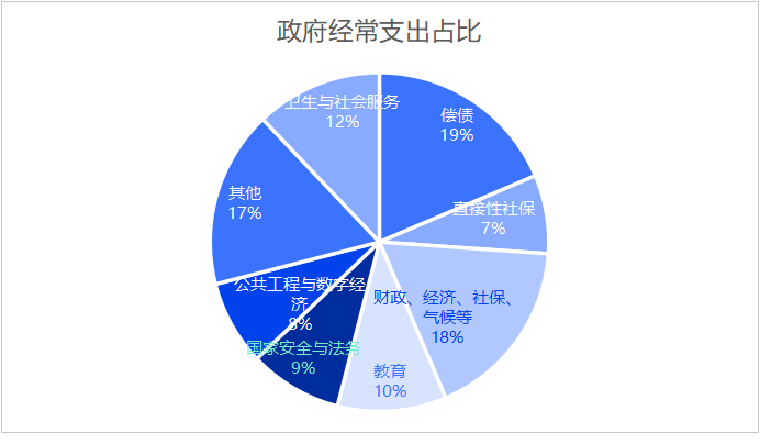 以下是除去专项基建剩下那三分之一经常支出预算占比。
