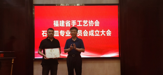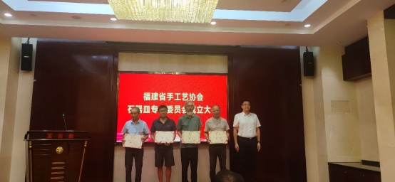 成立仪式由福建省手工艺协会秘书长陈俊达主持。在筹备组成员何伟强代表专委会筹备工作组向大会做筹备工作情况汇报,省手工艺协会副会长郑煌章宣读协会关于成立石器皿专委会的批复后,经大会表决通过,程力钦当选为福建省手工艺协会石器皿专业委员会主任,陈国力、庄惠东、庄德山、谢建新、黄朝辉、苏健6人当选副主任,何伟强当选为秘书长,杨惠山、陈博攀、张惠强、蔡卓宏4人当选副秘书长,张文山当选为监事,任燕杰为专委会驻会秘书。