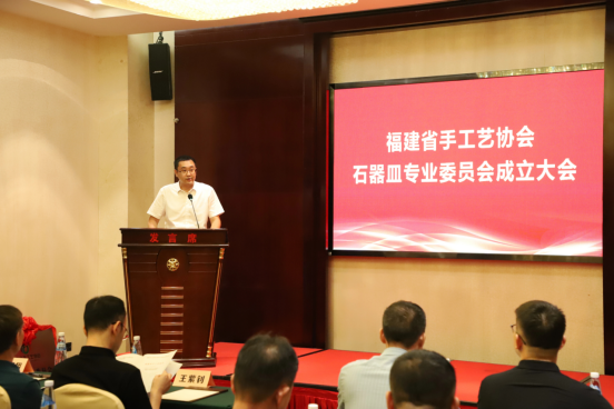 9月28日,福建省手工艺协会石器皿专委会在泉州惠安成立。福建省市场监督管理局原二级巡视员蒋爱民,泉州市城镇集体工业联合社四级调研员林志伟,惠安县委常委、县政府副县长蒋舒翔,惠安县委常委、组织部部长王紫钊,中国工艺美术大师王经民,福建省手工艺协会会长谢泉忠,副会长郑煌章、王烈平、黄国保等领导嘉宾出席。
