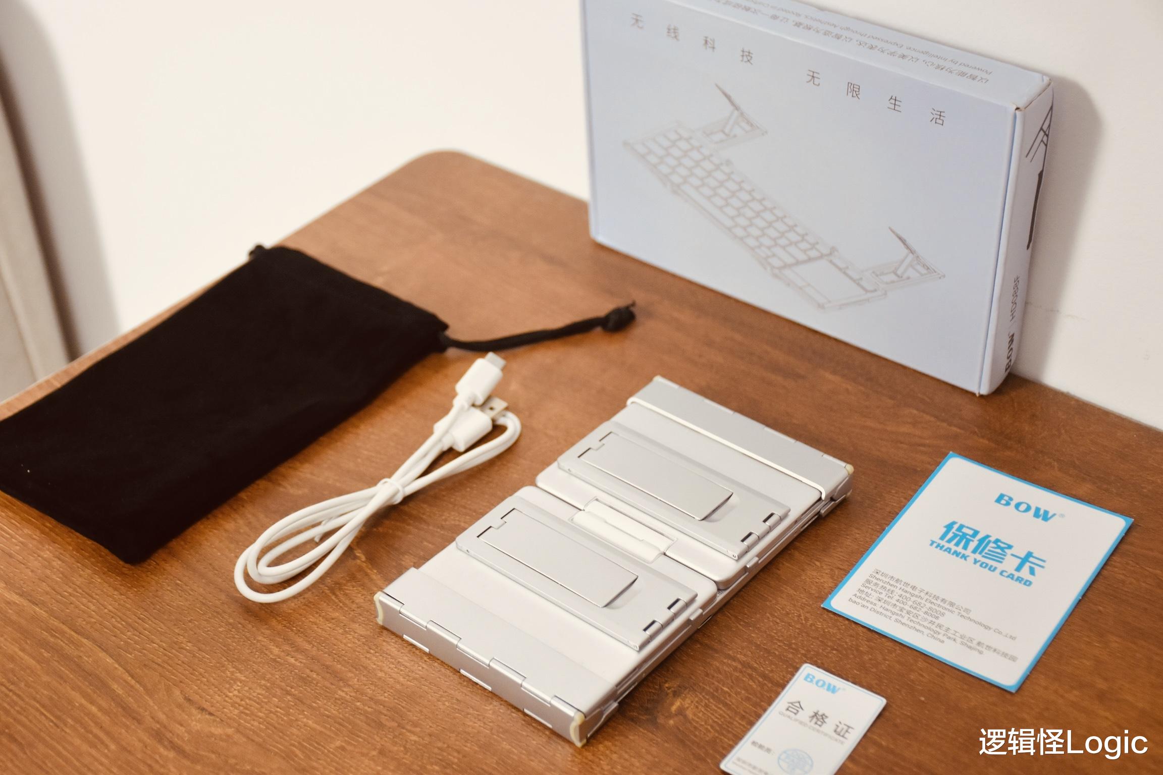 产品标配:折叠键盘本体、Type-C充电线、2.4G无线接收器、收纳袋、保修卡、合格证。