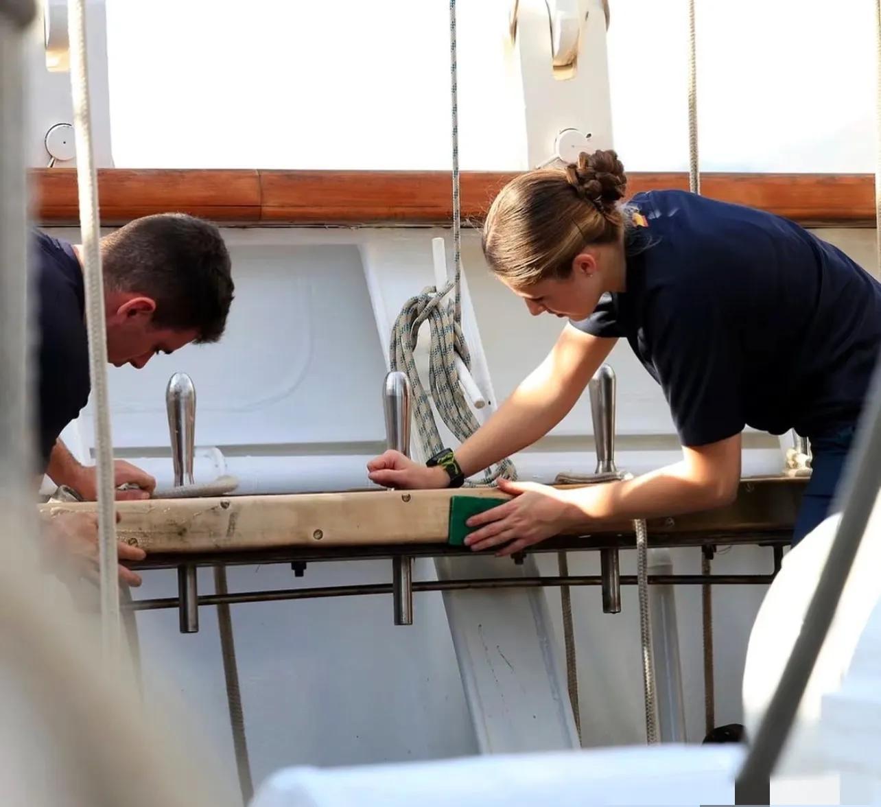 莱昂诺尔公主不仅要进行日常的训练,还要亲自攀爬近50米高的桅杆。