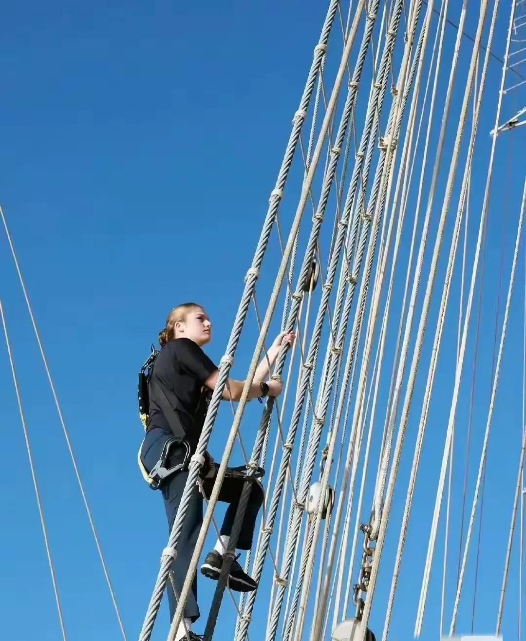 但莱昂诺尔公主却轻装上阵,毫不畏惧,轻车熟路地爬上了桅杆,实在太帅了!