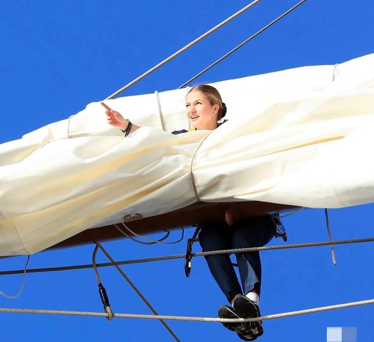 从王室发布的照片来看,莱昂诺尔公主在桅杆上和同学们一起合影,笑容灿烂,丝毫不见一丝紧张和害怕。