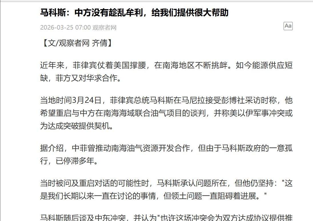 说到底,菲律宾的所作所为,本质上就是想在大国之间左右逢源、两头占便宜。它拿中国的民生援助解决国内的能源和粮食危机,又靠挑衅中国向美国交投名状,换取美国的军事支持,以为这样就能坐收渔利。