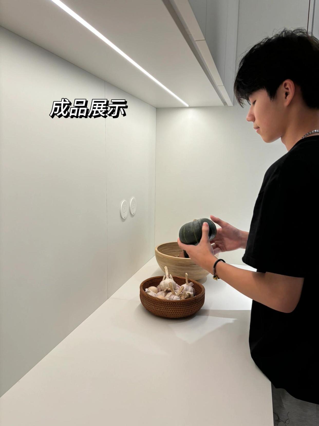 所以,可以在吊柜下方装条感应灯带,嵌入式或粘贴式的LED感应灯都合适,灯光均匀铺满操作区,完全没有阴暗死角。