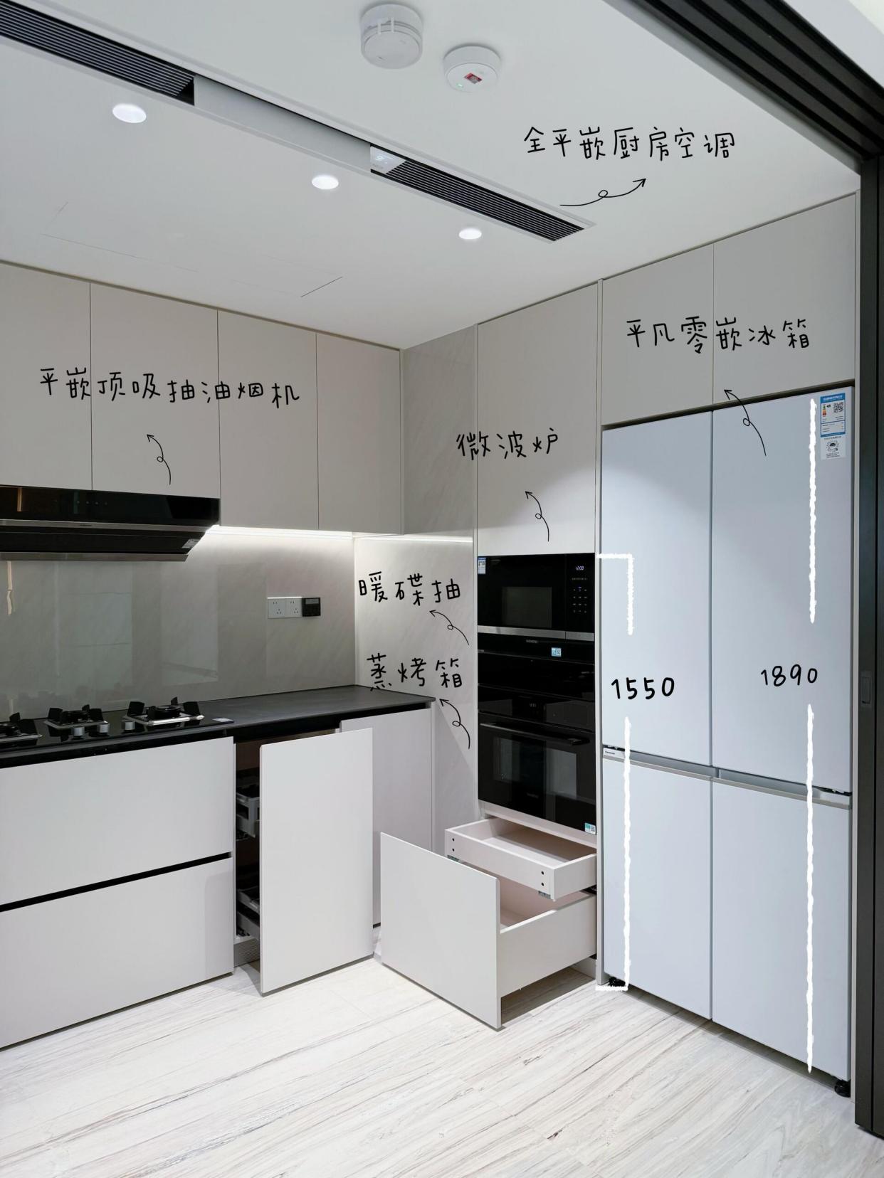 不过要注意:定制橱柜前就得定好电器尺寸,开门方式,散热需求这些都要提前沟通。