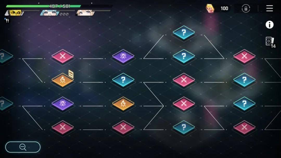 而组卡的过程要靠下副本(游戏内称之为卡厄思)。副本是典型的肉鸽地牢规则,玩家要一格一格前行,击败各路敌人,收集装备,升级卡牌,直至走到关底消灭BOSS。通关之后,玩家可以将副本中获取的卡牌和装备以“存档”的形式带出副本,用于日常战斗。
