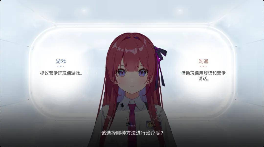 一方面,游戏的很多养成系统与世界观和角色直接关联。比如战斗时角色的崩溃自然引出“创伤治疗”。玩家可以通过“咨询”治疗角色心理创伤。在对话过程中,玩家能自然了解到角色的过往经历,加深与角色的羁绊。在此过程中出现一些情感浓度较高的对话也就非常自然,属于一举两得的设计。