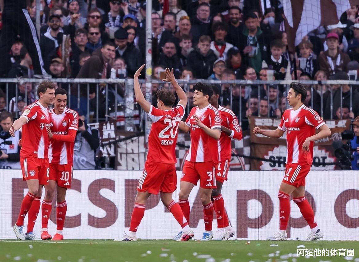 拜仁可以说是这赛季状态与火力最为出色的球队,南大王上周还在欧冠8强击败皇马士气正旺;本轮回到联赛轮换对阵倒数第三的圣保利,拜仁再次打出大比分。上半场第9分钟,莱默尔传球,穆西亚拉头球破门打开胜利之门;下半场第53分钟,拜仁定位球机会,里茨卡不慎乌龙助攻,格雷茨卡后点破门扩大优势;1分钟过后,第54分钟,格雷茨卡抢断后传球,奥利塞远射破门。雅克松随后又在第66分钟和第89分钟完成破门实现了梅开二度,拜仁5:0大获全胜。