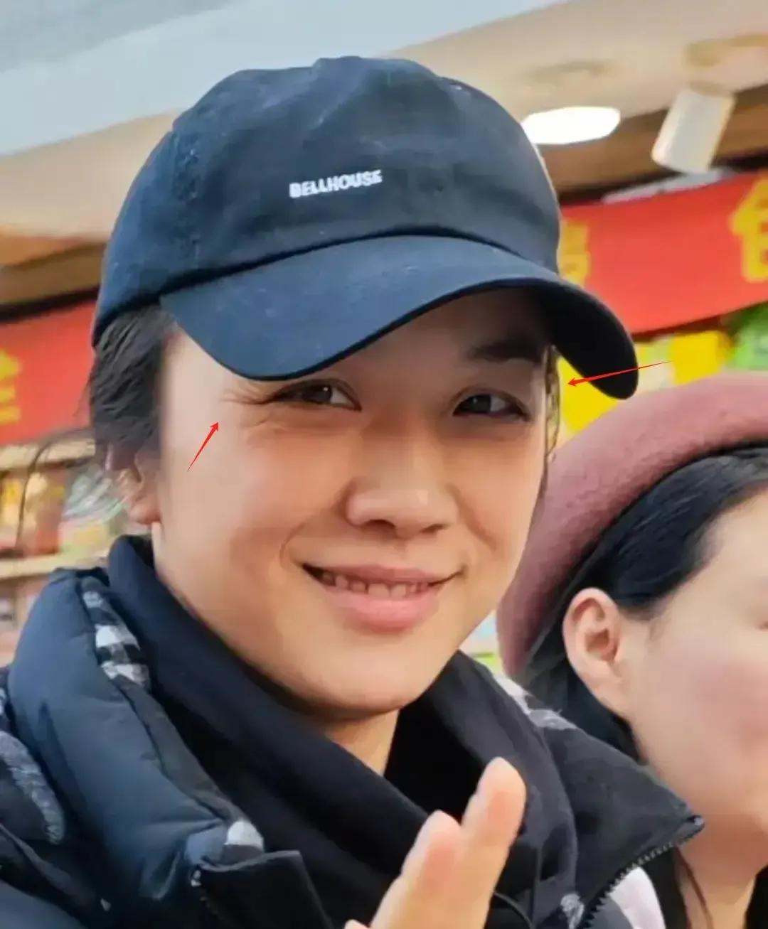 眼角的鱼尾纹更深,更明显,同时还存在面颊下垂的状况,毕竟也属于奔五的年龄了,其实,胶原蛋白量能够保持这样的状态,已经很不容易了,完全可以碾压90%以上的同龄人。