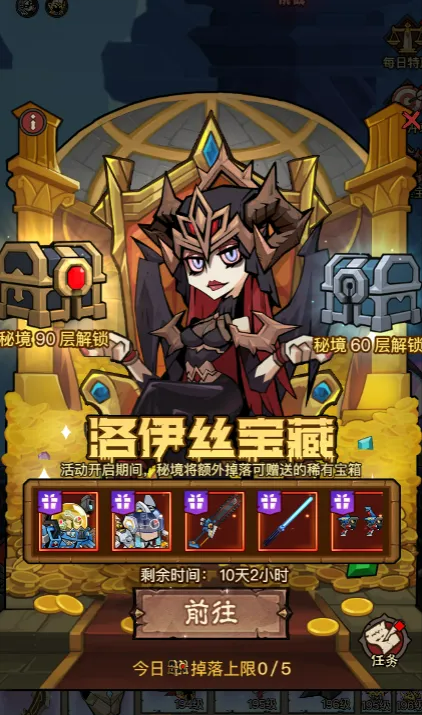 洛伊丝宝藏(开服 20-48 天):完成秘境、穹顶之战任务得钥匙,10 连抽紫装掉落率 + 30%,优先换 “原罪之伐套装”(痛割流血流续航)。
