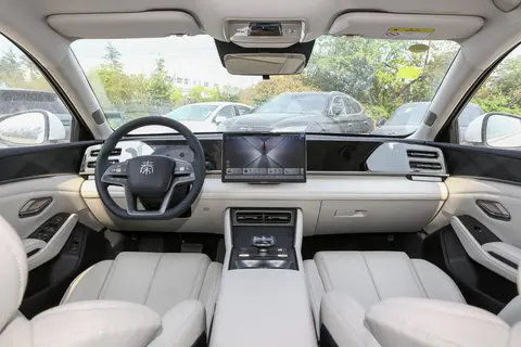 比亚迪秦L的内饰风格主打温馨实用,色系搭配很舒服。中控屏根据不同配置分12.8英寸和15.6英寸,DiLink座舱系统表现稳定,也是根据不同车型配置了双音区和四音区语音指令,同样有了DeepSeek大模型的支持,空调、天窗、多媒体,语音控制很方便。8.8英寸的仪表盘没有前者那么敞亮,HUD功能在顶配车型上得以实现,不过只有12英寸,看来便宜有便宜的道理。
