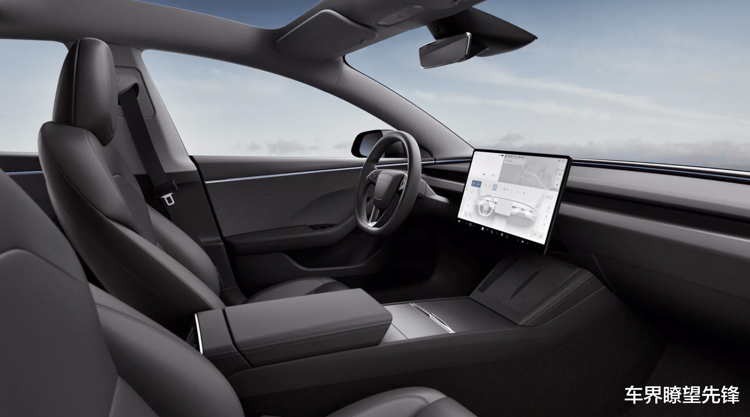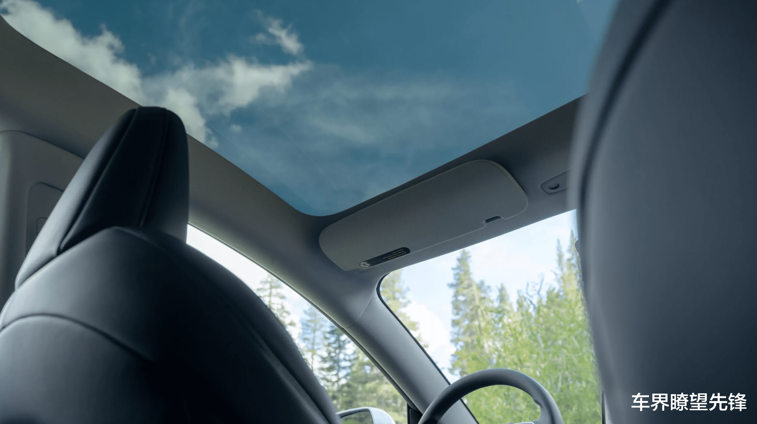 再来说下Model 3,外观、内饰的变化几乎与Model Y一样,也是标配18英寸,可选19英寸的轮毂,标配隐形灰,可选珍珠白和钻石黑的车漆。织物取代了皮革的座椅,方向盘降为手动,后排触摸屏取消,音响系统被简化等等。但有一点不一样,就是Model 3完全保留了原来的玻璃车顶,这一点还是比较惊喜的。