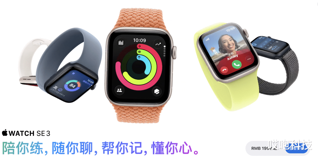 续航方面,S11 提升到了 24 小时。最后说说价格,铝金属版2999 元起,钛金属版 5799 元起,9 月 11 日开始预购,9 月 19 日发售。Apple Watch SE 3关键词:常规升级这个没啥说的,就是增加了 5G 网络、换了 S10 芯片、增加续航和充电速度,S11 上的睡眠评分也给了。