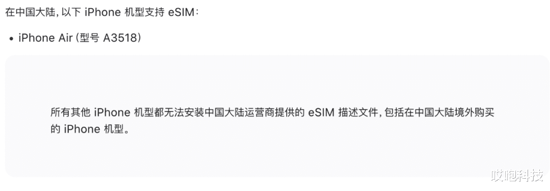 iPhone Air 仅支持 eSIM,而国内仅有中国联通支持 eSIM,而且根据官网描述,eSIM 是锁区的,也就是说仅有国行版能用国内 eSIM。