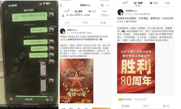 9月3日当天,刘奕畅等人还发表了爱国文案,完全一副遵纪守法好市民的架势,而讽刺的是那位因为拒绝陪酒,而差点被他嘎掉的网友就恰巧就是位军人。